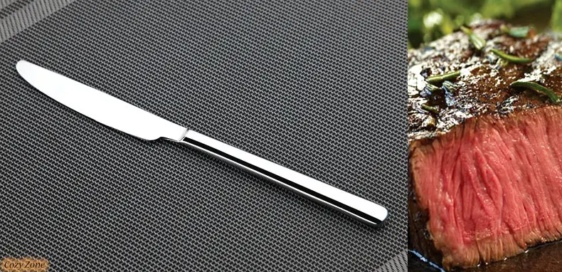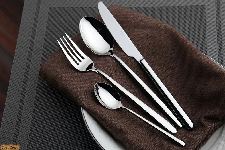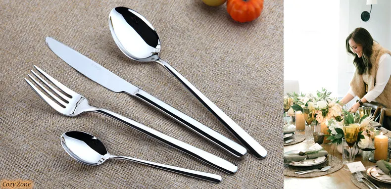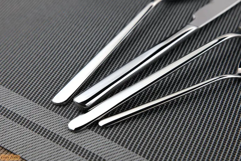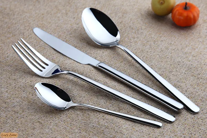 Silver Color 24 Pieces Set: 6 Knives 6 Forks 6 Table Spoons 6 Tea Spoons