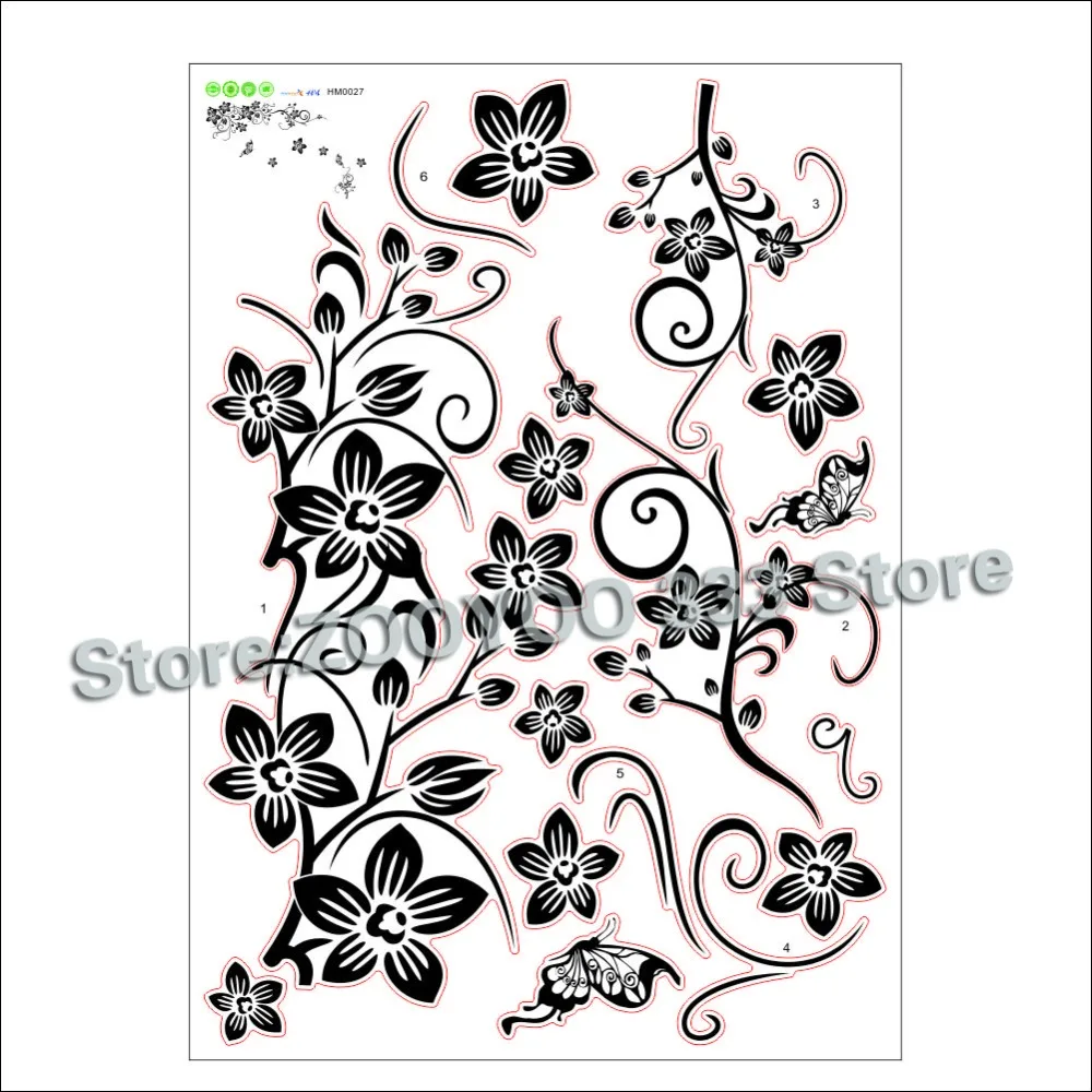 Product Description:Black Flower Vine Wall stickers home decor large paper flowers living room bedroom wall decor sticker on the wallpaper